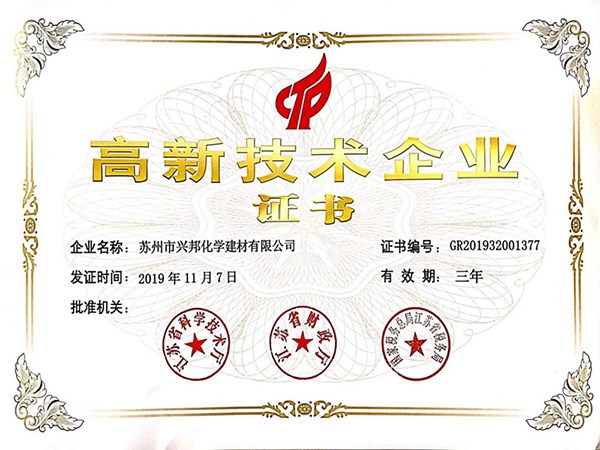 興邦擁有經(jīng)驗(yàn)豐富的高水平科研技術(shù)團(tuán)隊(duì),完整的科研管理體系,及完善的科研測(cè)試硬件設(shè)備。良好的軟硬件條件和持續(xù)的科研投入帶來累累碩果,興邦產(chǎn)品和為客戶提供的配方開發(fā)支持獲得客戶一致好評(píng),累計(jì)獲得授權(quán)的發(fā)明專利超13件、實(shí)用新型超4件,累計(jì)參與國(guó)家、行業(yè)及團(tuán)體標(biāo)準(zhǔn)超20項(xiàng)。與此同時(shí),興邦自2016年被首次認(rèn)定為高新技術(shù)企業(yè)以來,已經(jīng)連續(xù)三次順利通過高企審核。公司技術(shù)研發(fā)中心被認(rèn)定為“蘇州市綠色節(jié)能建筑材料工程技術(shù)研究中心”、“蘇州市企業(yè)技術(shù)中心”、“江蘇省無機(jī)膠凝材料外加劑工程技術(shù)研究中心”等等。